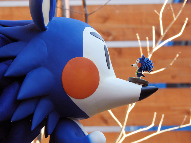 作者是イノイエシン(@ShinShin_ino),他做的是遊戲中的一名角色—刺蝟「娟兒」(きぬよ),他利用石粉黏土、保麗龍、螺栓等材料做成,他先用金屬螺栓將骨架做出來,然後再用保麗龍先填滿骨架內部,最後用黏土將外表蓋上並塑形,整體模型的身高為56公分,角色身上有的特色都有顧慮到,因為角色是刺蝟,所以頭後的刺也十分還原,作者也將小型的Amiibo模型擺到放大版的鼻子上來對比,從圖片上看就知道放大多少倍了。