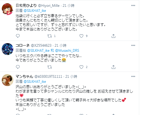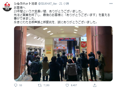 繼歷史最悠久的「旋轉木馬」豐島園關門後,因為受疫情影響的池袋街機老店《SILKHAT 池袋》(前稱為旧GAMEサントロペ池袋)確定決心關門,11日結束了23年的輝煌歷史,除了報導外也引來粉絲感謝與朝聖,而這已經不是第一波因為疫情而重創的老店倒閉風潮。