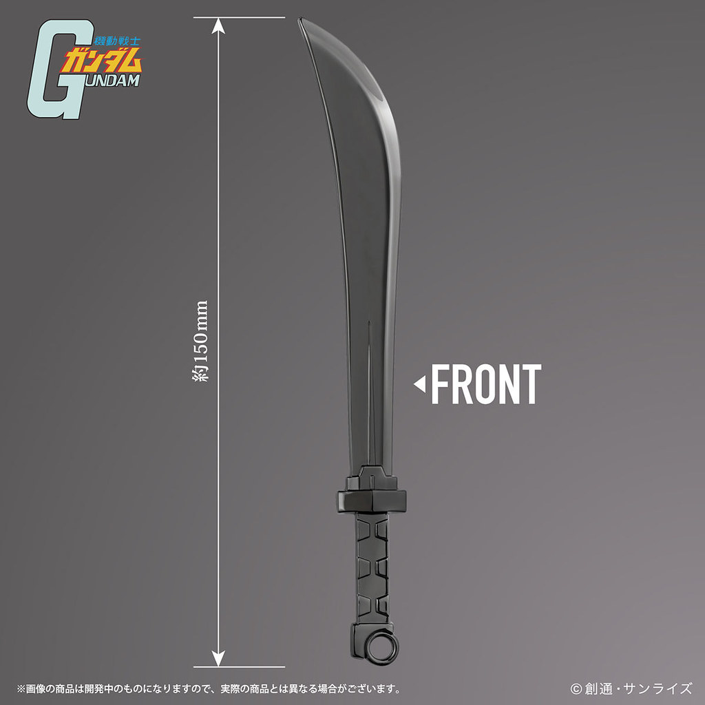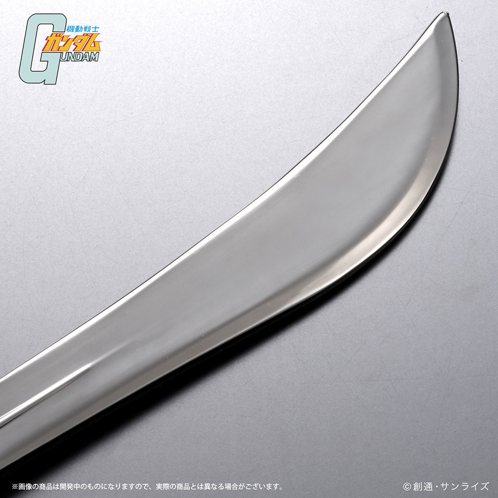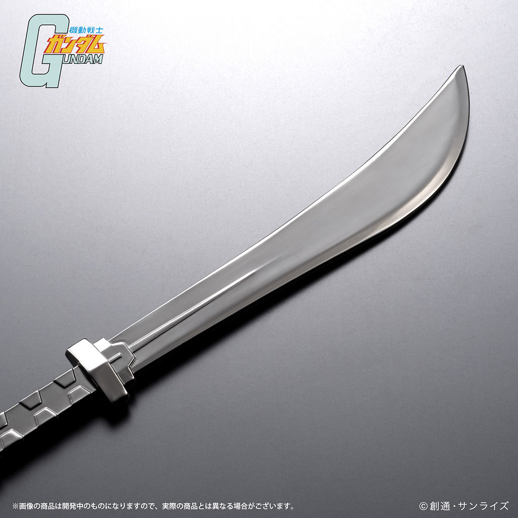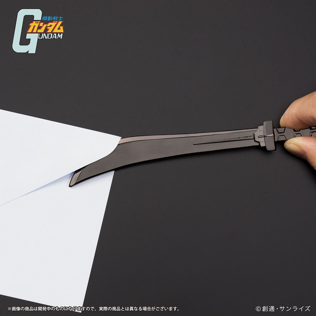 以《機動戰士鋼彈》古夫的經典武裝-電熱刀(ヒート・ソード)作為原型設計的拆信刀,尺寸約為 15× 150 × 9 mm,使用鍍鋅合金製作,深沉的銀黑色澤不僅整體具有份量感,也更顯質感!參考售價為 3,300 日元,目前已於日本 PREMIUM BANDAI 線上商店開放預購,預計將於 2021 年 4 月發貨。