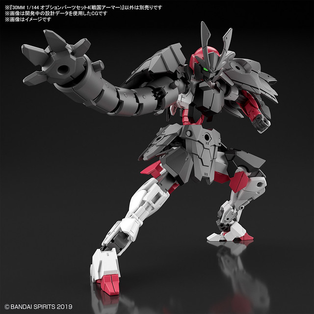 此外 04 月也將同步推出「30MM 1/144 配件套組4 (戰國裝甲套組)」,商品包含「蛇腹型組件×1組」、「裙甲零件×1組」、「大型肩甲×1」、「足輕、武者頭部零件×各1」、「手肘零件×2」、「龍型頭部×1」,多樣造型能夠賦予『30MM』系列機體更豐富的戰國風格!