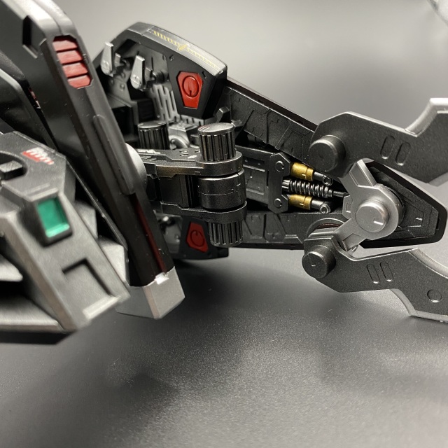 這次在手指的部分上了兩種金屬色讓刀刃的部分隨著光線反射出銀色刀鋒的感覺