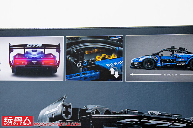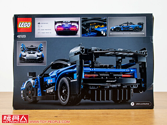 ▼ 包裝盒正面印製了樂高「麥拉倫 Senna GTR」模型車圖樣跟賽道場景。