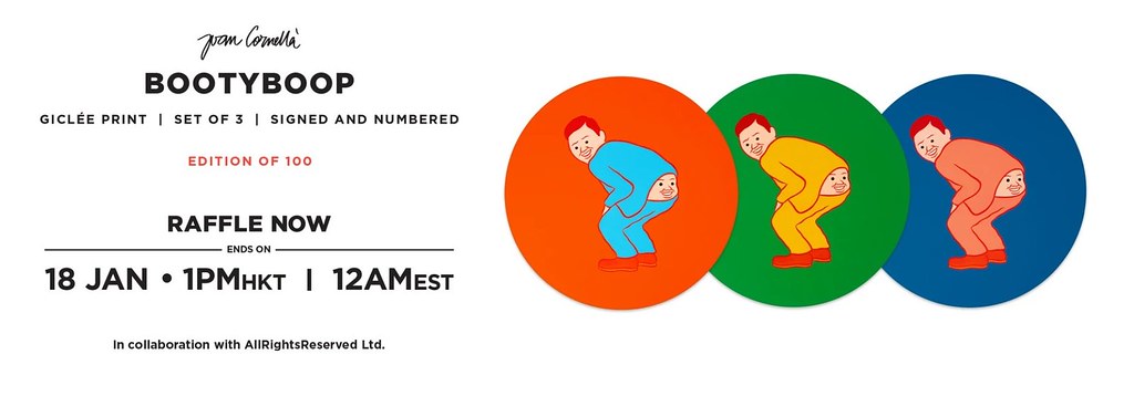 乘著香港著名創意工作室 AllRightsReserved 與西班牙藝術家 Joan Cornellà 聯合呈獻的大型個展《My Life is Pointless》火熱氣勢,Joan Cornellà 與 AllRightsReserved 將帶來 2021 年的第一彈驚喜:《Bootyboop》限量數位版畫,限量100套,抽籤現正開放登記!延續「Booty」笑看人生的精神,以黑色幽默打開2021年的扉頁~