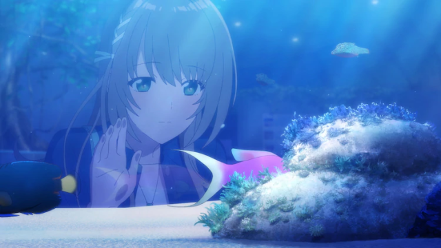 《白い砂のアクアトープ》這部作品是以沖繩 南城市中即將閉館的水族館為舞台背景的青春群像劇。劇情講述擔任水族館館長代理的海咲野和在東京放棄夢想,失去了去處的原偶像少女宮澤風花的相遇,他們的青春故事就從此處開始。