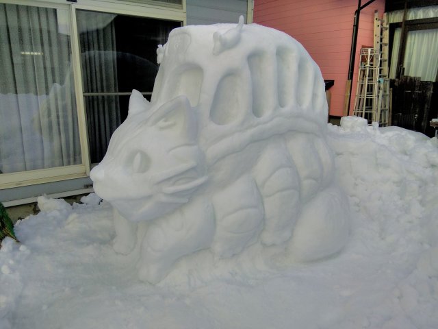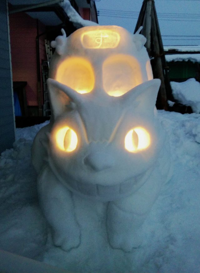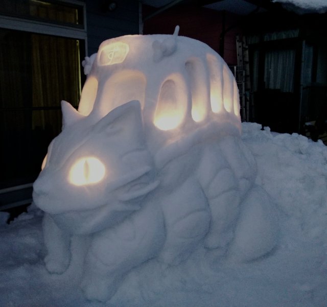 但卻也喜歡整片白色雪景,尤其像是打雪仗、做雪天使,甚至是堆雪人…等等,再加上一些厲害的達人利用白雪所製作的雕塑藝術,那更是叫人嘆為觀止!先前日本一名「雪雕達人」雪だるま職人としにゃん(@mokomoko_2015)就打造了吉卜力動畫《龍貓》中的「貓公車」造型雪雕,讓人驚豔的是雪雕裏頭居然還暗藏著燈光,感覺似乎隨時都會啟動發車一樣,精緻感因此更上升。