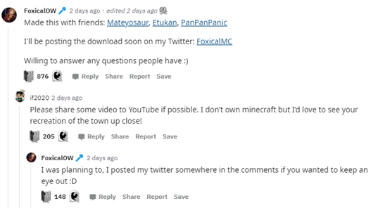 推主在reddit與twitter等地方公布後便引起話題,首先感謝團隊中一起完成的同好,許多玩家在一次表態《我的世界》是絕對不會落伍的遊戲。其中也有人請教製作過程,詢問本次作品的細節。