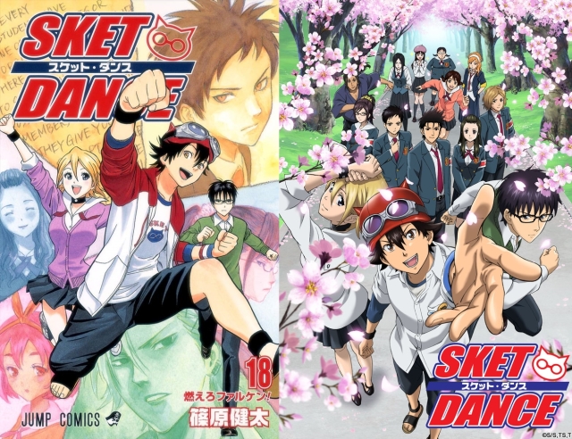 ▼《SKET DANCE》左為單行本封面,右為動畫視覺圖。