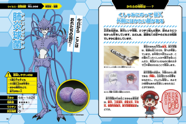內容介紹包含許多已知的病毒與細菌,以《工作細胞》的風格呈現,使用動畫中作為敵人角色出現的大量病毒和細菌的動畫插圖,了解每種病毒的特徵和對策。 讓中小學生更容易理解相關的知識。