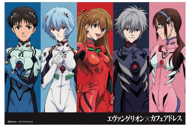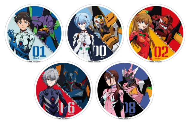 包含;碇真嗣、綾波零、明日香、真希波與渚薰五位角色的形象設計的飲品,由色系呈現出不同的風貌。