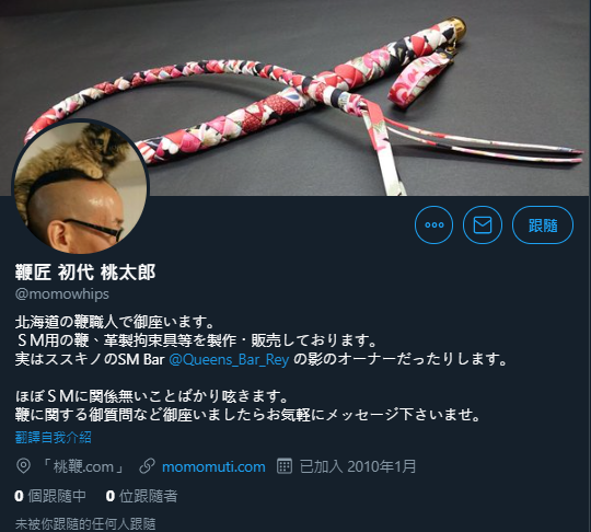 有趣的是,實際上這位推主是專做SM道具的匠師,最多成品的就是SM常見的鞭子,而且各式各樣的鞭子都有XD