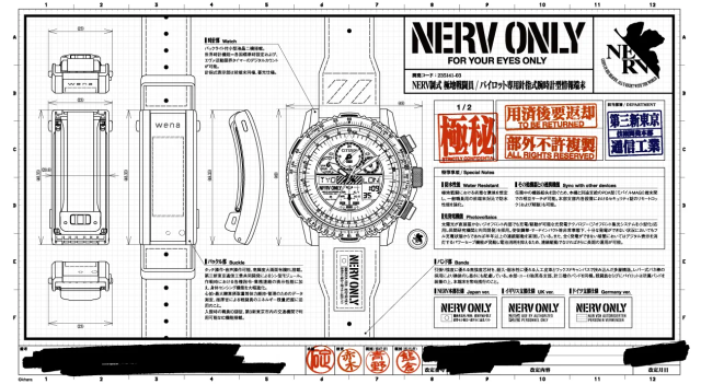 「wena 3 -NERV EDITION- 」手錶是以「極地戰鬥員 / 駕駛員専用」為設計概念為基礎,使用 CITIZEN 的「Promaster」錶型為基底,設計成專門為 NERV 總部人員配戴的手錶。表面上布滿 NERV 風格的文字與標示,連配色上都有如總部的螢幕色彩一般,展現出絕佳的匹配。
