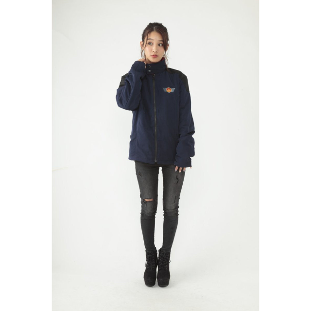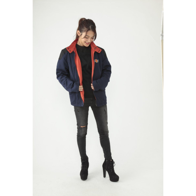 胸口上有著亞納海姆電子產業聯合體 (アナハイム・エレクトロニクス;ANAHEIM ELECTRONICS)的 Logo 圖示,內裡採用亮橘色的對比色系,搭配外套本身的深藍色,相當實穿的配置相信日常生活穿著也沒問題 XD。( 不過單價真的貴啊... )