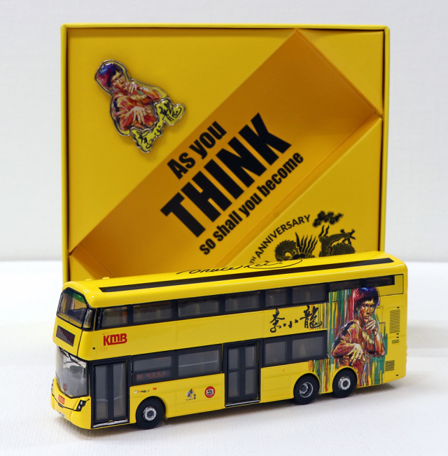 而九巴前衛富豪 B8L 特別包裝盒內藏一個精美李小龍襟章!