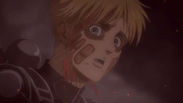 阿爾敏的部分也因外型上的轉變,成為觀眾粉絲們的最大焦點,有別於四年前時頂著妹妹頭的模樣,不僅將髮型剪短,成為外型清秀的美男子外,變身成超大型巨人的外貌更是奪取不少觀眾的目光,有別於上一個持有者「貝爾托特」,變身後的眼神更是多了一份悲傷感。