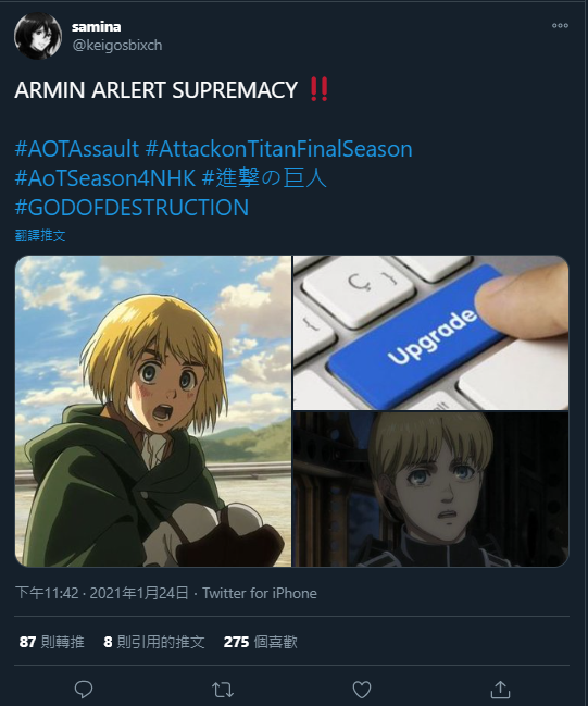 ▼阿爾敏的轉變再度圈粉女性觀眾