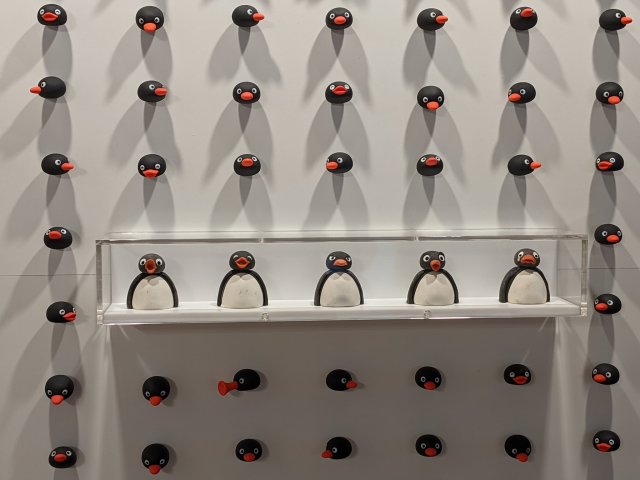而日本推主NINE(@NINEGK5RS)日前也去觀賞了這場「企鵝家族40週年紀念展」,並且分享了許多照片在他的推特帳號上,我們從圖中可以看見滿滿的「Pingu頭」一個一個被黏在白色的牆壁上,並且分別都有著不同的角度與表情,雖然說猛然一看是有那麼一點「震撼」,但也是相當壯觀。