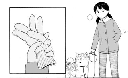 故事概述飼主りえ子は帶著柴犬ポン太とお散步,意外發現自己手套少一支,突發其想讓愛犬嗅了嗅手套,想透過他靈敏嗅覺找到遺失物,原以為會順利尋獲,但愛犬卻發現另外一處的鞋子後,便叼著鞋遺忘原本要找手套這事兒。