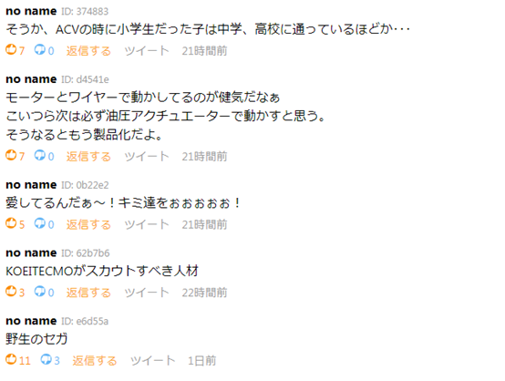 該畢業專題很快傳致海外媒體,並受到網友肯定,遊戲粉絲也認為「很棒的作品」,而學生也表示自己最喜歡的第五續作《機戰傭兵V》(2012)的熱忱,而網上留言表示「野生的SEGA」和「使用液壓商業化可能」討論,也間接肯定該學生作品的潛力。