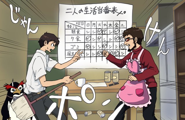 我們都知道一開始主角碇真嗣是跟美里姊姊住在一起的,而且跟他的老爸碇源堂的關係並不是那麼的好,因此推主則將碇司令的角色定位套用在真嗣的同居人葛城美里身上…老實說,光看這四張圖,不禁讓人懷疑這其實是《銀魂》的「MADAO」長谷川吧XD