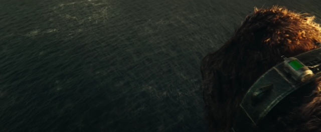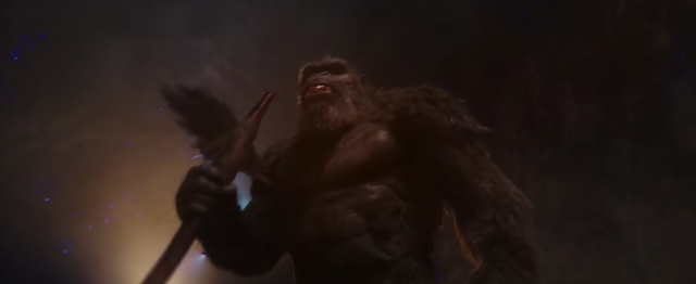 為了對戰強敵,可不是變大變壯就行,身為靈長類,腦袋聰明的金剛也懂得使用武器,這次我們能見到牠手持一把巨大的斧頭。關於這武器的來歷,預告中似乎暗示是金剛的祖先傳承下來的,斧刃本體就是哥吉拉族的背鰭。正如我們在預告後面所見,如同避雷針般,這把斧頭能抵擋甚至吸引偏移哥吉拉的熱線,看來會是相當重要的關鍵物件。