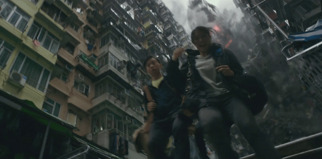 而最大的爆點,其實就擺在影片最前面,許多人已經發現了,開場襲擊香港的疑似是「機械哥吉拉」(Mechagodzilla),我們可以從 0:03 人群上方稍微瞄見應該是頭部的輪廓。除了開場,在 1:42 這幕後方的屏幕,也能見到疑似機械哥吉拉結構圖的顯示。
