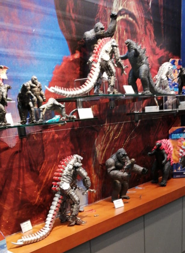 雖然本片主題始終包裝成是哥吉拉與金剛的互鬥,但就像《蝙蝠俠對超人:正義曙光》那樣,不少人推論最終兩者將會聯手共抗強敵,而這強敵的身分實際上早就曝了光。這照片是一年前流出的,上頭陳列著 Playmates Toys 所推出的新玩具,之中已經可以見到銀色身軀的那傢伙,只是由於新冠肺炎的影響,本片不斷延期,所以直到今日才得以證實。