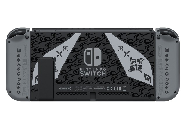 根據官方所釋出的情報表示,包含主機的正面與背面,以及Joy-Con搖桿,皆印有遊戲《魔物獵人 崛起》中的魔物「怨虎龍」的圖樣,並且採用了灰黑色底來與金黃色的怨虎龍圖案拉出色彩對比,更是凸顯了該特別版主機的特色。