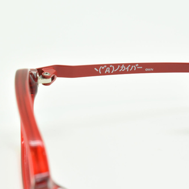這款「耳機眼鏡」的鏡框是為了本產品製作的完全原創鏡框,印有《命運石之門》劇中未來道具研究所的LOGO以及成員編號,並且印上了熟悉的顏文字。鏡框內側是折回來的靠墊,讓平時需長時間戴著眼鏡的人就算戴上耳罩式耳機或口罩也能緩解頭部的壓迫感,戴起來也可以是很舒服的。使用了紅色當作底色的鏡框,不僅適合Cosplay,也推薦平時使用。另外,因為裝的鏡片是防藍光鏡片,所以也可以當作電腦用眼鏡來使用。