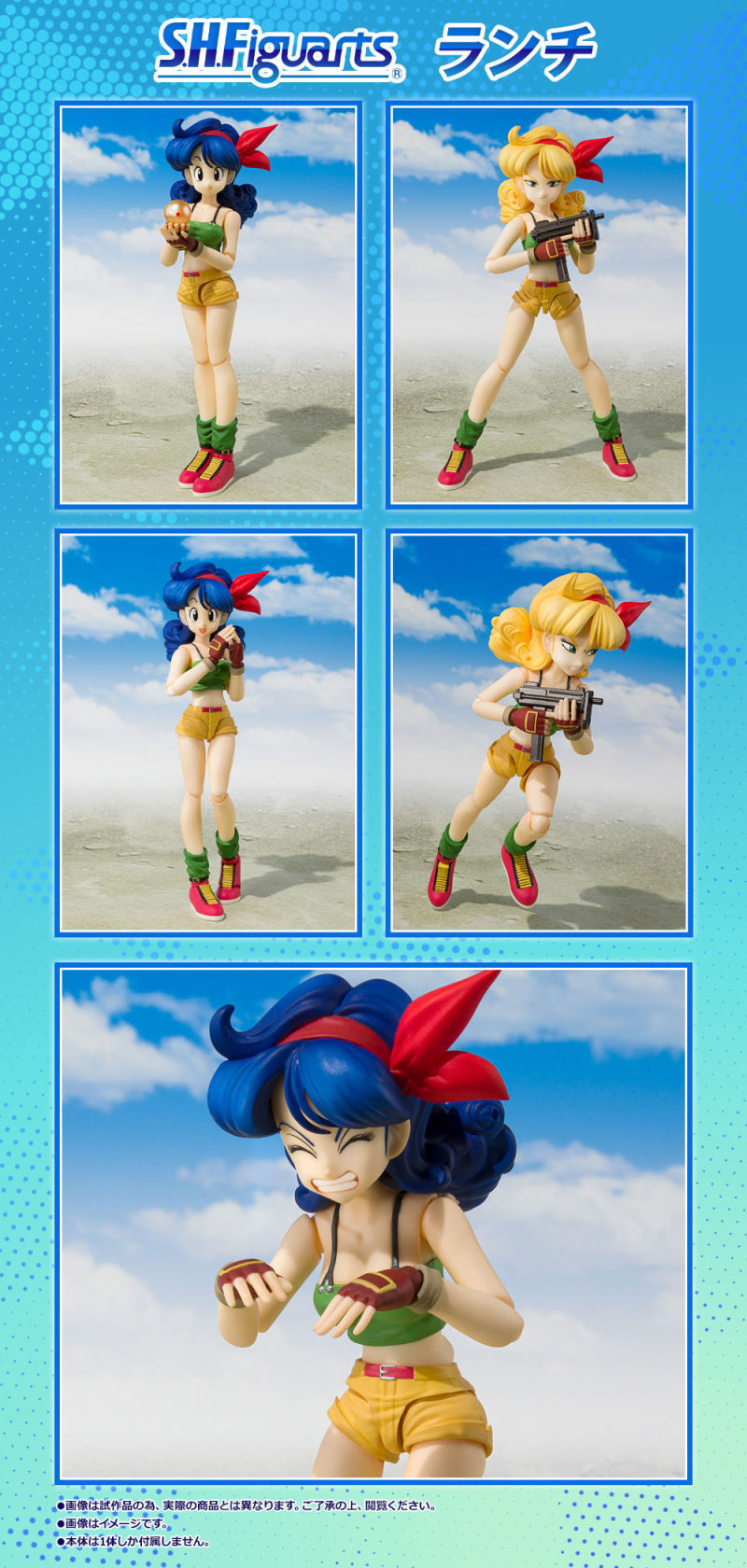 「S.H.Figuarts 蘭琪」可動人偶,尺寸全高約130mm,將切換人格的藍髮、金髮兩種狀態透過替換零件一次呈現!兩種蘭琪一次滿足~再現浪漫大捲髮、纖瘦高䠷、穿著短版小可愛背心與火辣小短褲招牌造型!溫柔、火辣剽悍的性格,皆附有兩款替換表情,變身關鍵的打噴嚏表情當然也不能少!另外搭配武器槍與七龍珠(一星球)神龍召喚Ver.道具,以及少年悟空、龜仙人等角色,重現最初的七龍珠的喜劇世界觀!