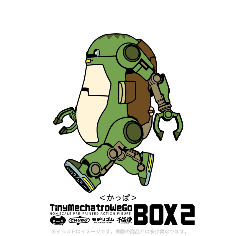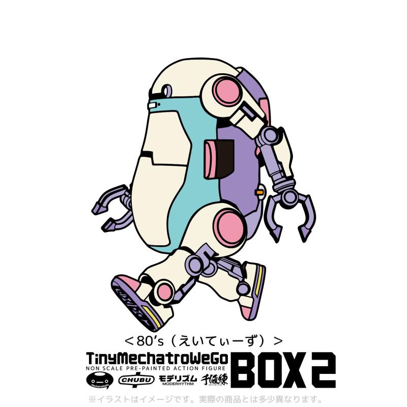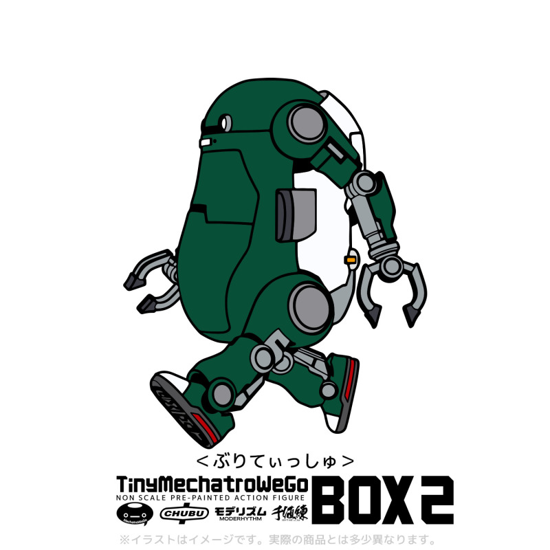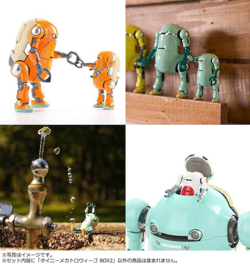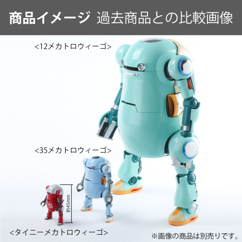 「微型機動機器人Wego 盒玩2」(Tiny MechatroWego),以高約 45 mm的迷你尺寸,將 MechatroWeGo可愛的造型精緻呈現,陣容分別為35機動機器人WeGo 80’s的迷你版「80’s」,以及新色「英國賽車綠」、「高科技HG」、「河童」、「ISO」、「藍計程車」六種,雖然尺寸小,但一樣具備精美塗裝與靈活的可動四肢,可以擺飾出站姿與坐姿~