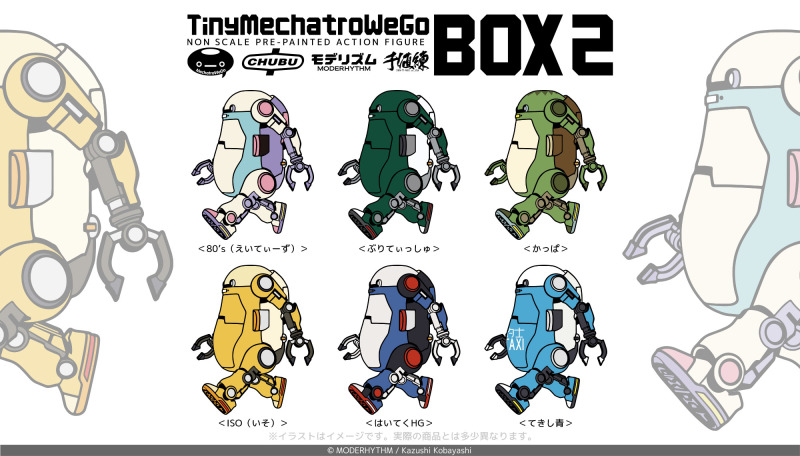 moderhythm /小林和史設計的「35機動機器人WeGo」,由日本千值練玩具公司(株式会社千値練)推出的「微型盒玩版本」在推出第一彈後,睽違多年終於再度發表了第二彈作品「微型機動機器人Wego 盒玩2」(タイニーメカトロウィーゴ BOX2),一共有 6 種款式,預計將於 2021 年 06 月發售!