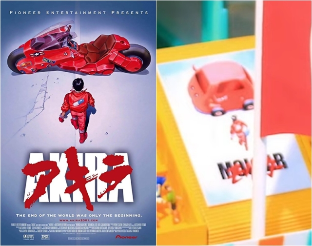 事實上在《天竺鼠車車》剛開始爆紅的時候,就有網友曾將《阿基拉》中的那台紅色摩托車惡搞成了天竺鼠車車的模樣,更甚至連《頭文字D》、好萊塢電影《瘋狂麥斯》(Mad Max)也不放過。從今集來看,果然連官方都很懂得操作啊XD