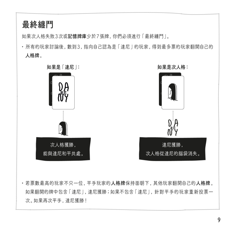 達尼在整場遊戲中,都不能被其他人格發現,要躲藏好,從中搗亂