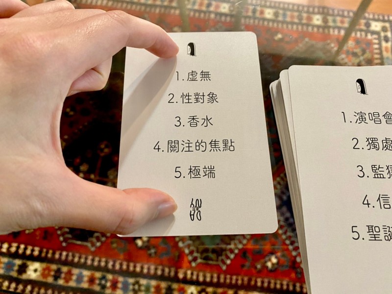 1-5的牌,洗一洗,行動人格自己抽一張,自己看是哪個題目,不要給別人看!