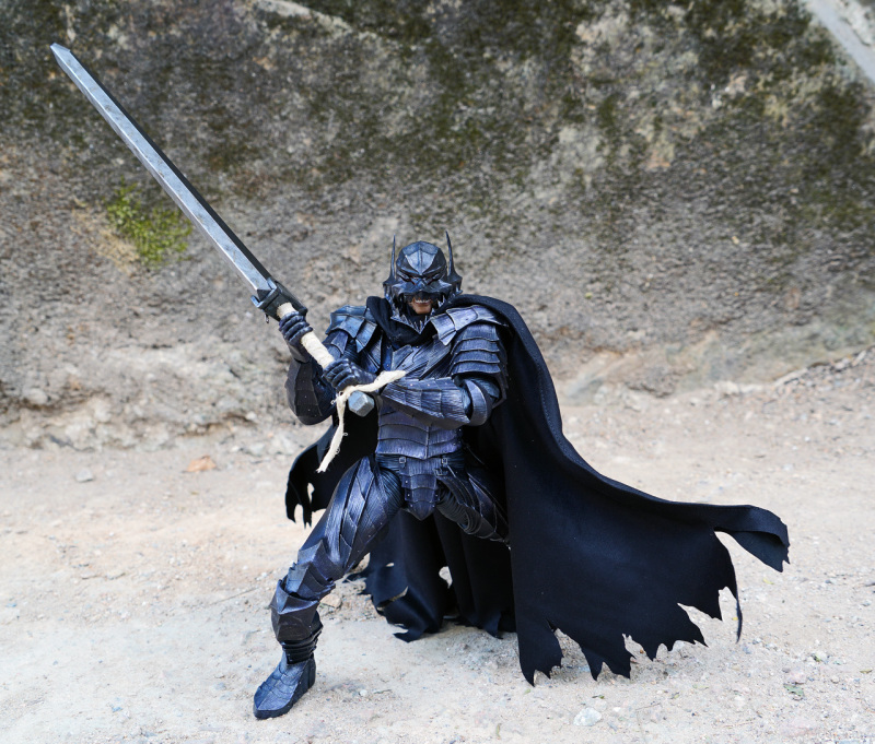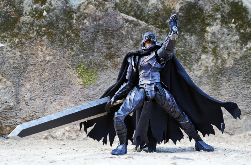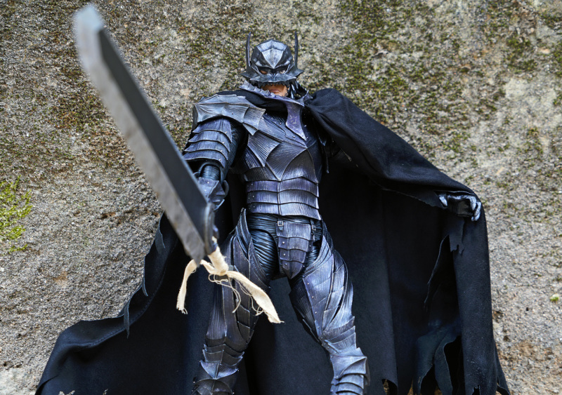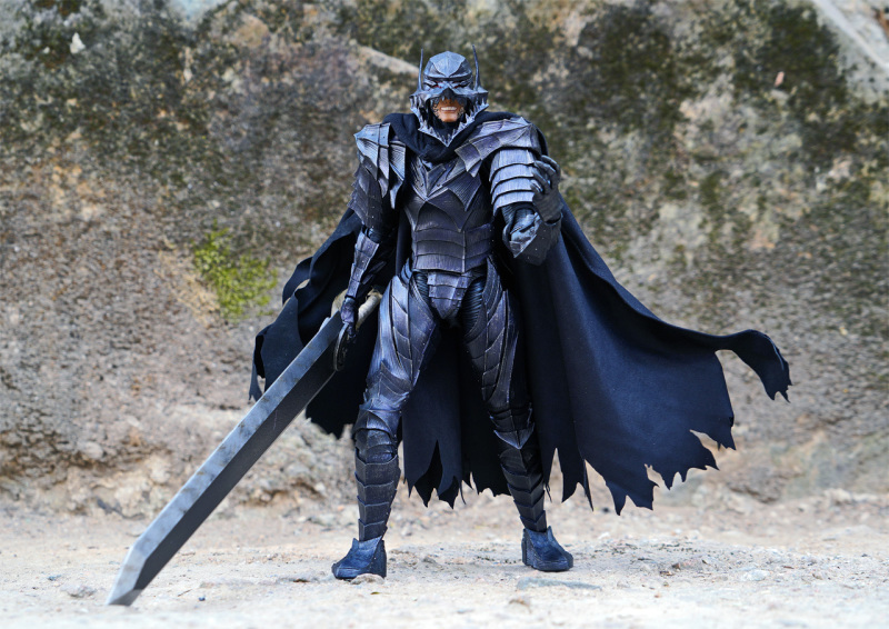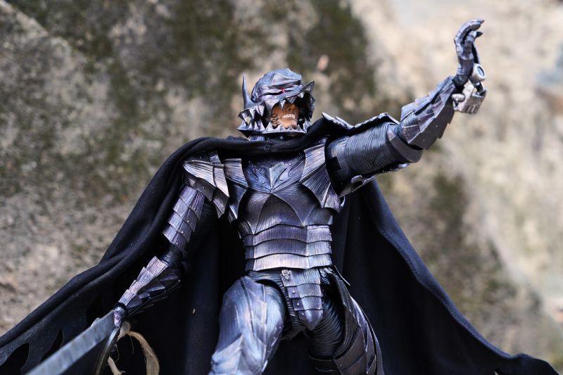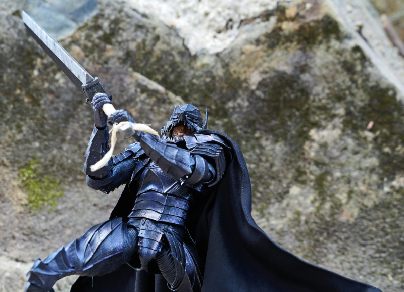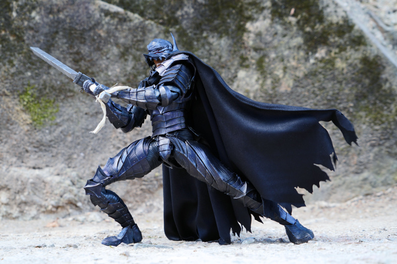另外基於本身是盔甲造型,所以其關節可以讓外甲遮蓋,令各關節可以像機械人設定一樣有非常多的可塑性及活動性。所以在可動上這格斯基本上是犯規級的!手踭及膝蓋的連動很精彩,所有擬人的動作亦可以做到。關節夠實淨,而最精彩的是手持 "斬龍" 的情況下依然沒有不舉的情況!劍柄有布包著,而斗篷亦有內藏鐵線,所以你可以擺出你喜歡的斗篷造型,同時所有布料亦有作舊化處理!