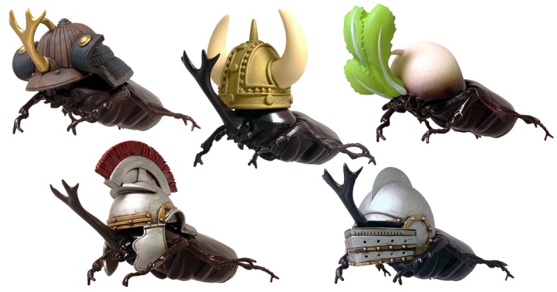 將獨角仙的日文「兜むし」拆解為古代武將的頭盔(兜)與蟲(むし),重新結合為戴著頭盔的「武士獨角仙」轉蛋~每款尺寸約為 7.5 公分,精選了世界知名的歷史性象徵頭盔,分別為「日本戰國武士獨角仙」、「古羅馬士兵獨角仙」、「維京人獨角仙」、「中世紀騎士獨角仙」,以及看似莫名其妙但其實也是諧音梗的「大頭菜獨角仙」,靈感取自獨角仙片假名「カブトムシ」中的「カブ」大頭菜,趣味可愛的設計讓人會心一笑~
