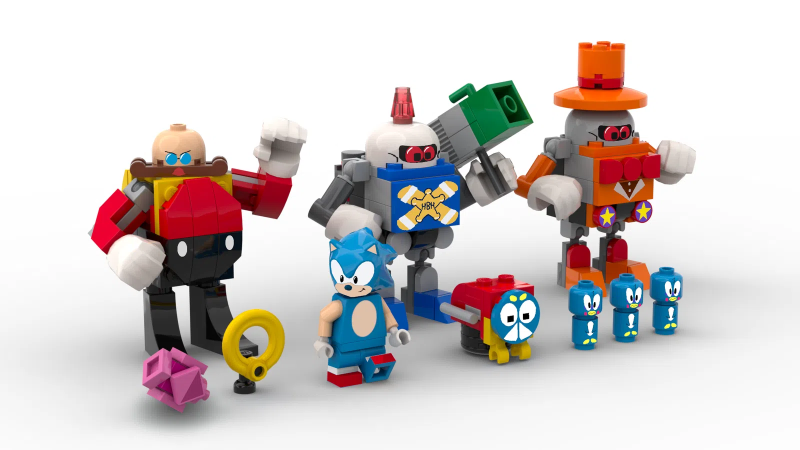 本作的靈感來源是 2017 年的電玩《音速小子狂熱》,Viv 前前後後大概花了一年左右的時間設計、修改,整體用上約 700 片零件,內容包含主要的角色模型、還原電玩設定且具備互動性的迷你場景,除了音速小子之外,還有蛋頭博士、Moto Bug、小鳥 Flicky、重裝砲手(Heavy Gunner)跟重裝魔將(Heavy Magician)的磚拼模型,以及超帥氣的死蛋金剛(Death Egg Robot),以碧山區域為題製作的場景更藏有許多機關,想更了解這個作品的玩具人可以點此到 LEGO IDEAS 平台欣賞喔。