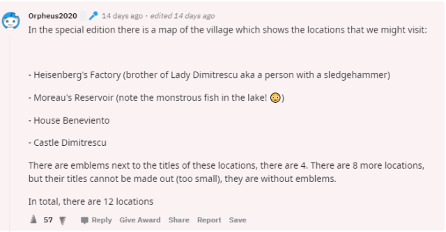 而今日外媒報導消息指出,《惡靈古堡8 村莊》典藏版將收錄的完整地圖,目前已在社群媒體Reddit上搶先曝光。根據Reddit發佈者Orpheus2020表示,該「村莊」地圖中完整呈現了玩家們將會經歷的幾個重要地點。