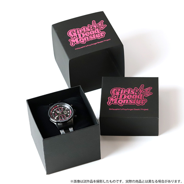 本次為了紀念《Angel Beats!》動畫播映 10 周年,推出此款「Girls Dead Monster 手錶」。錶面上有著樂團英文縮寫-GDM 的文字,整體配色以黑加上桃紅色來呈現樂團少女的氛圍。手錶的功能也不馬虎,以三眼的設計,日本製的機芯絕對是品質保證。