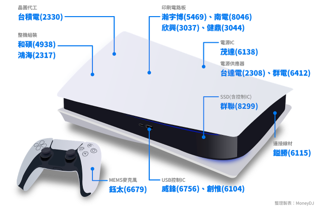 臺灣在PS5供應上的組件廠商分配,圖源:MONEY DJ