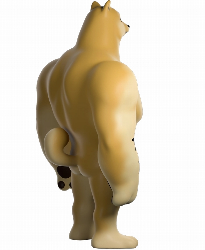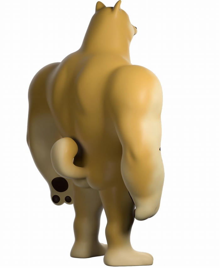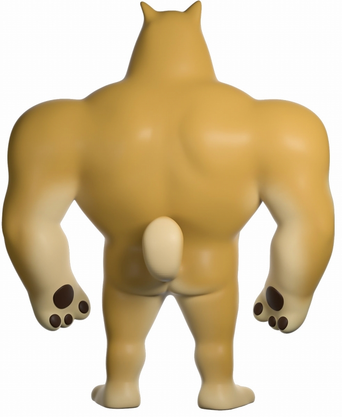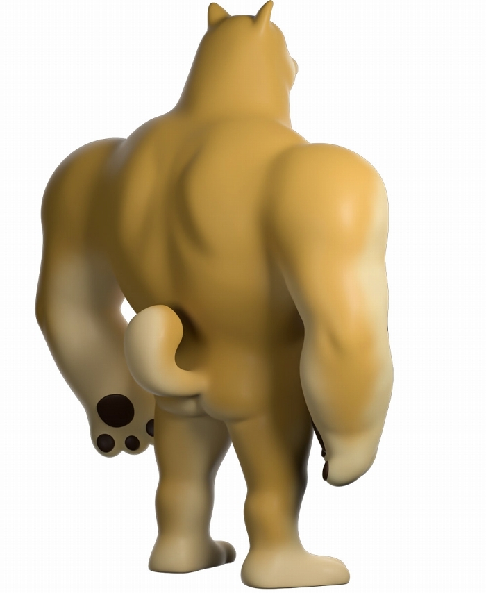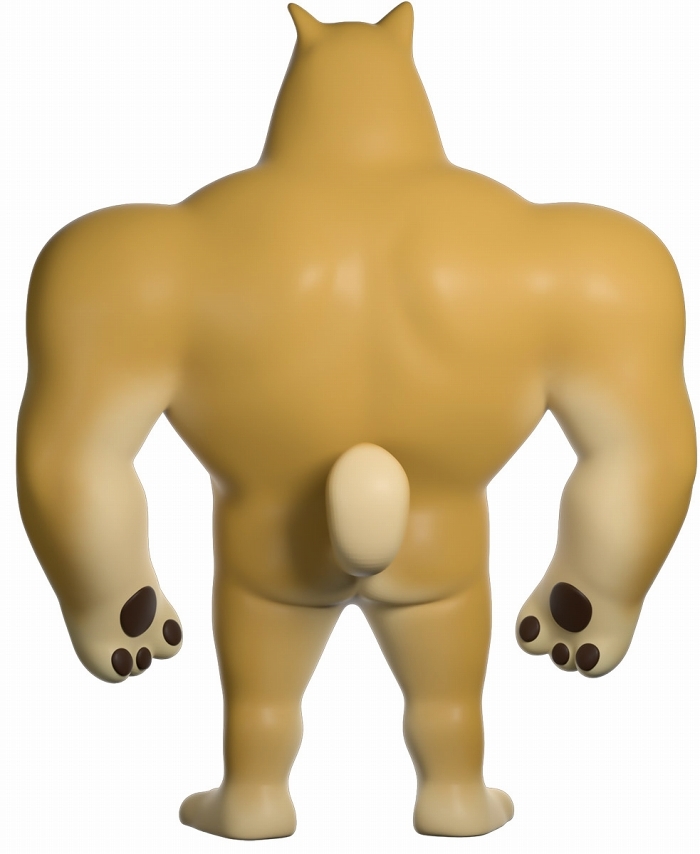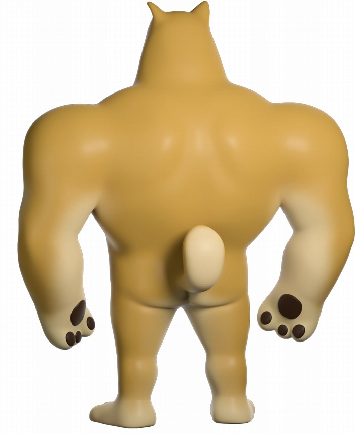 本作再現了「Swole Doge vs Cheems」迷因中那隻「大肌肌柴柴」不科學的狂暴身材,鍛鍊到極致的胸腹,加上粗壯有力而且手長及膝的雙臂,搭配小小一顆頭跟短腿實在笑翻,而且這款 Youtooz 推出的肌肉柴還做出了你在梗圖中看不到的結實背肌、有點療癒的肉球,以及捲起來的小尾巴,有夠衝突!