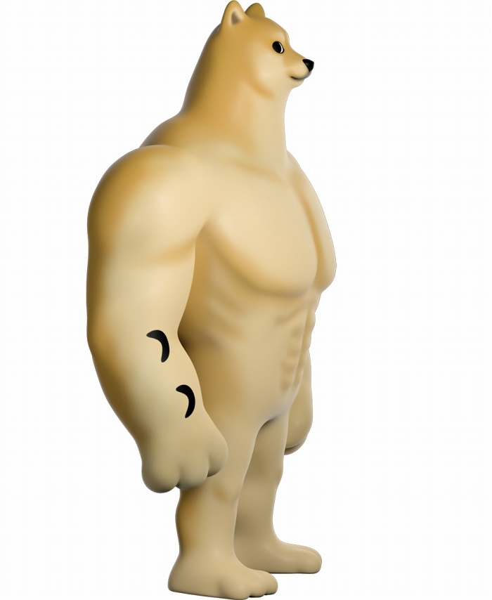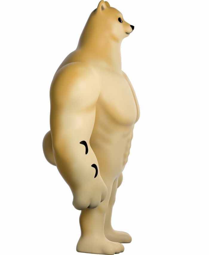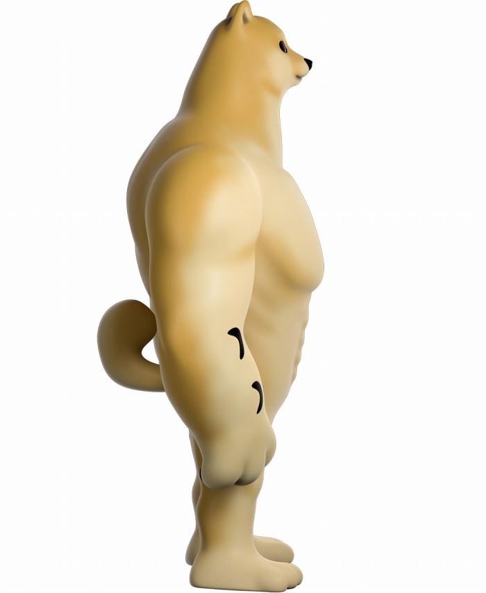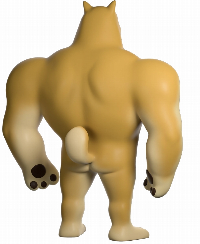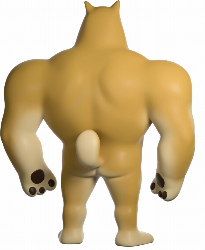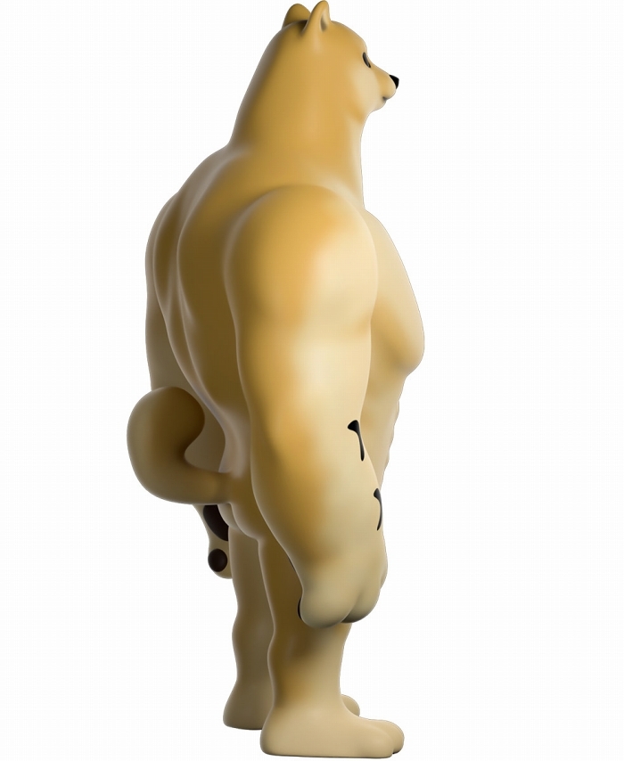 本作再現了「Swole Doge vs Cheems」迷因中那隻「大肌肌柴柴」不科學的狂暴身材,鍛鍊到極致的胸腹,加上粗壯有力而且手長及膝的雙臂,搭配小小一顆頭跟短腿實在笑翻,而且這款 Youtooz 推出的肌肉柴還做出了你在梗圖中看不到的結實背肌、有點療癒的肉球,以及捲起來的小尾巴,有夠衝突!