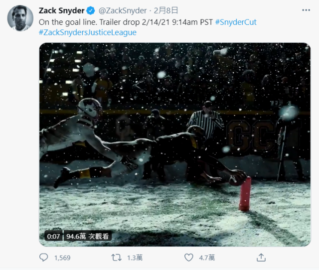 另外查導也在個人推特上宣布《查克·史奈德之正義聯盟》 的全新預告將在太平洋時間2月14日的早上9點14分發布(台灣時間2月15日半夜1點14分)。