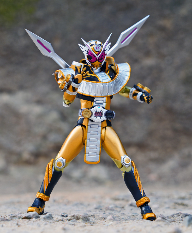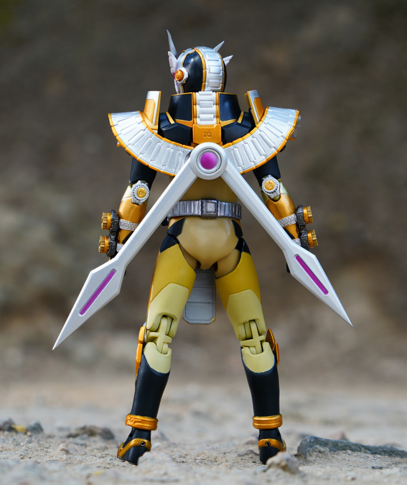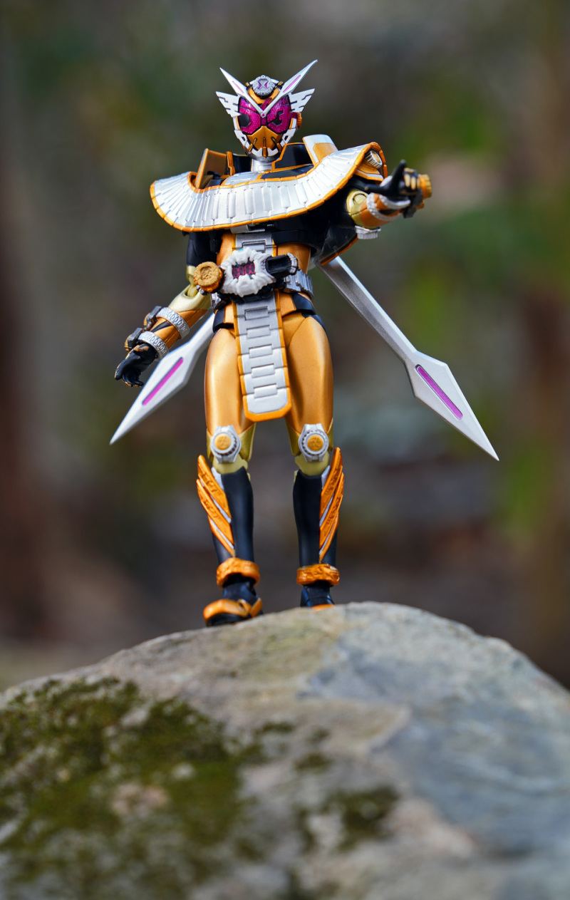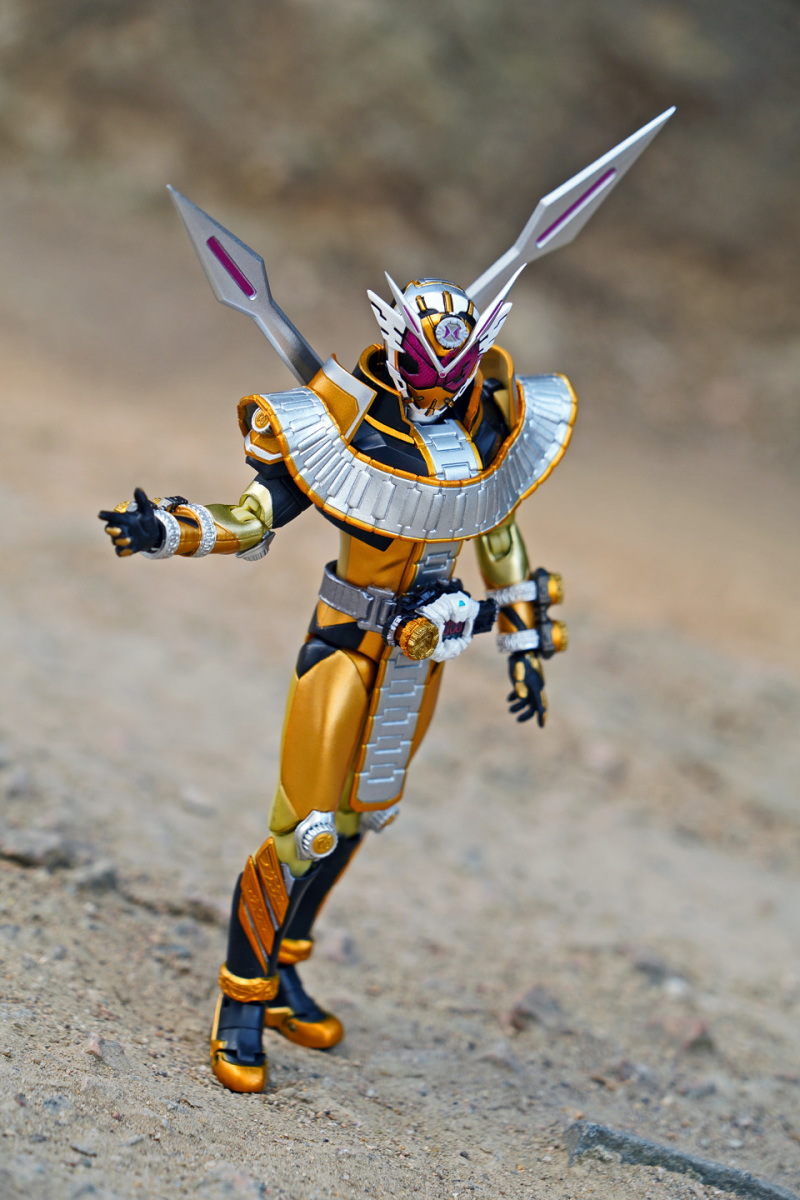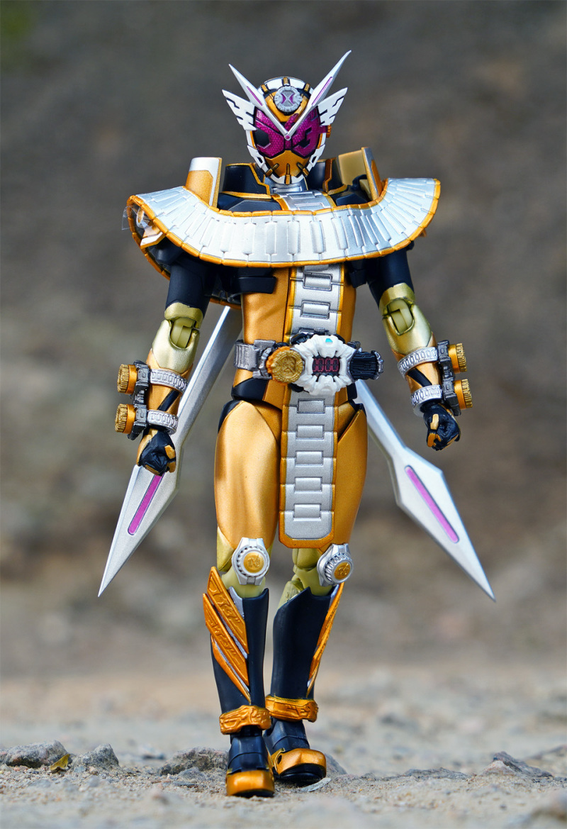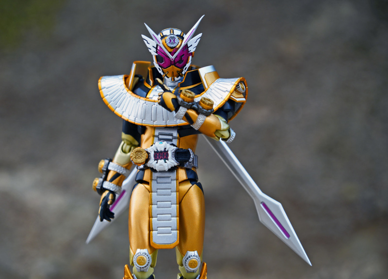 雖然 Bandai 在金包的處理上經常出事,但今次這只時王的 QC 卻沒啥問題!可動性亦保持 SHF 的一貫高水準;關節鬆緊度適中,單腳站立也不成問題;但肩部及腰部因造型問題對可動性做成障礙...... 整體上色及塗裝不俗,複雜的頭部及腰帶的造型亦忠實重現,不同的金色塗裝呈現了不同層次,雖然皮套背部的 "偷工減料" 亦重現,但那玉綠色的膠的確非常礙眼...... 金色的塗裝在耐久性亦是所有著色玩具中較差的,這有待時間的印証。