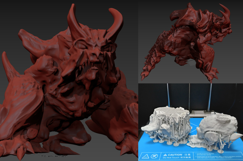 使用ZB做整隻的雕刻,受限家裡2009年的筆電效能,製作到100萬面左右就收手,先把基礎的型抓出來,再陸續加上細節。
