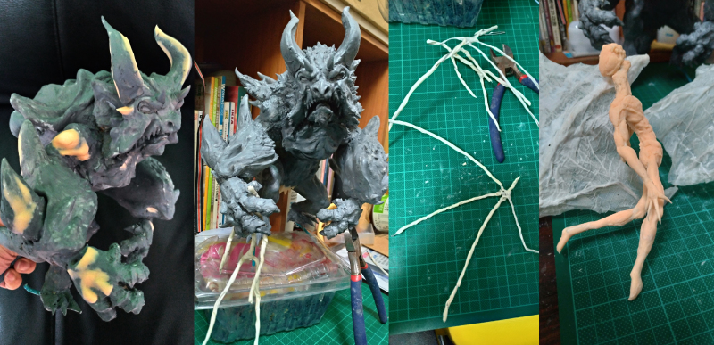 翅膀與惡靈太細小不好列印,就用面紙與鐵絲製作後再用土補強修飾