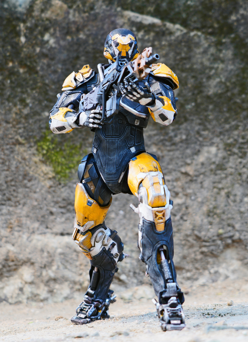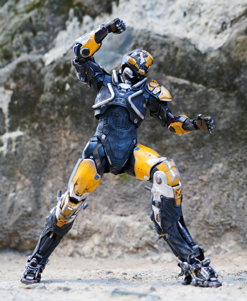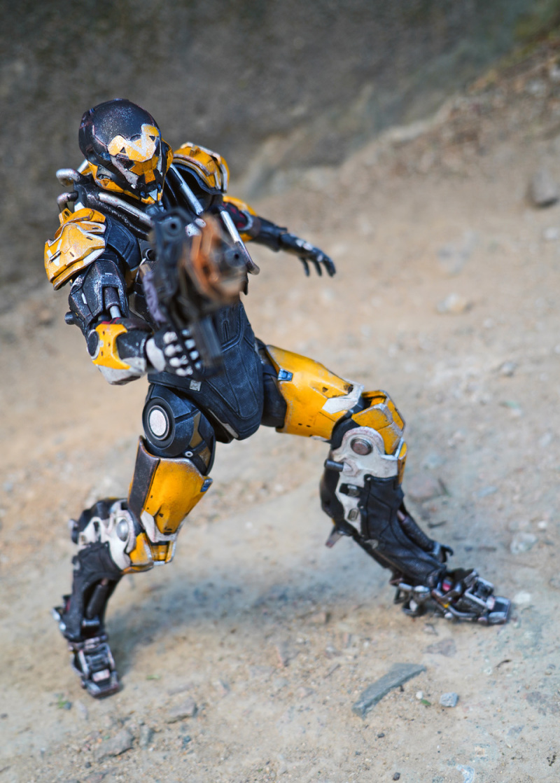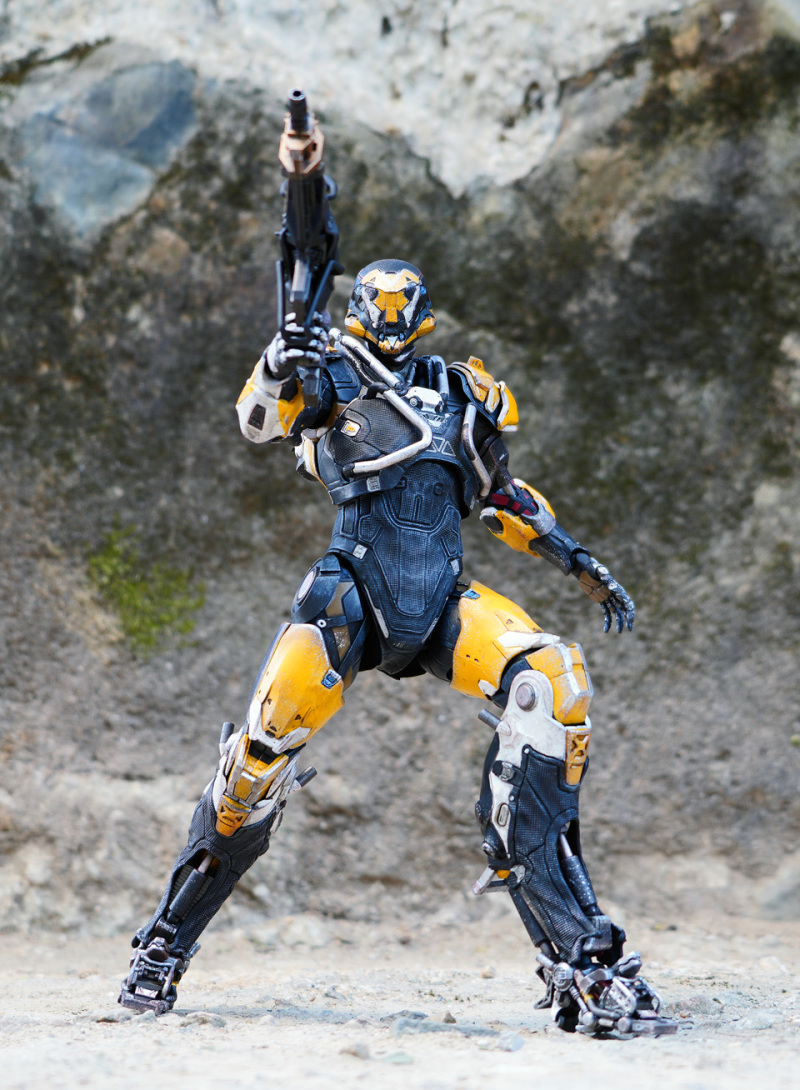 ”遊俠號” 全高約 36 cm,全身超過 27 個可動關節。配件包括六個可互換的造型手型及突擊步槍,並以大量複合材質及細緻刻畫其富機械結構的細節,以極致擬真的仿金屬質感塗裝及舊化效果,如實將遊戲中帥勁的科幻機甲由動畫中完美立體呈現。眼部及背部飛行背包更搭載 LED 發光功能,整體擬真質感更上一層樓。