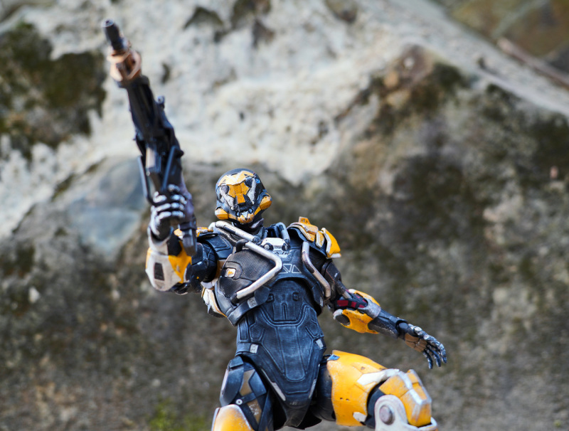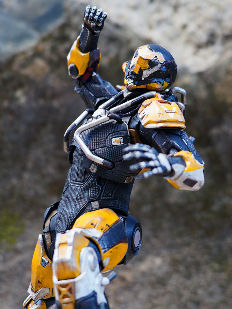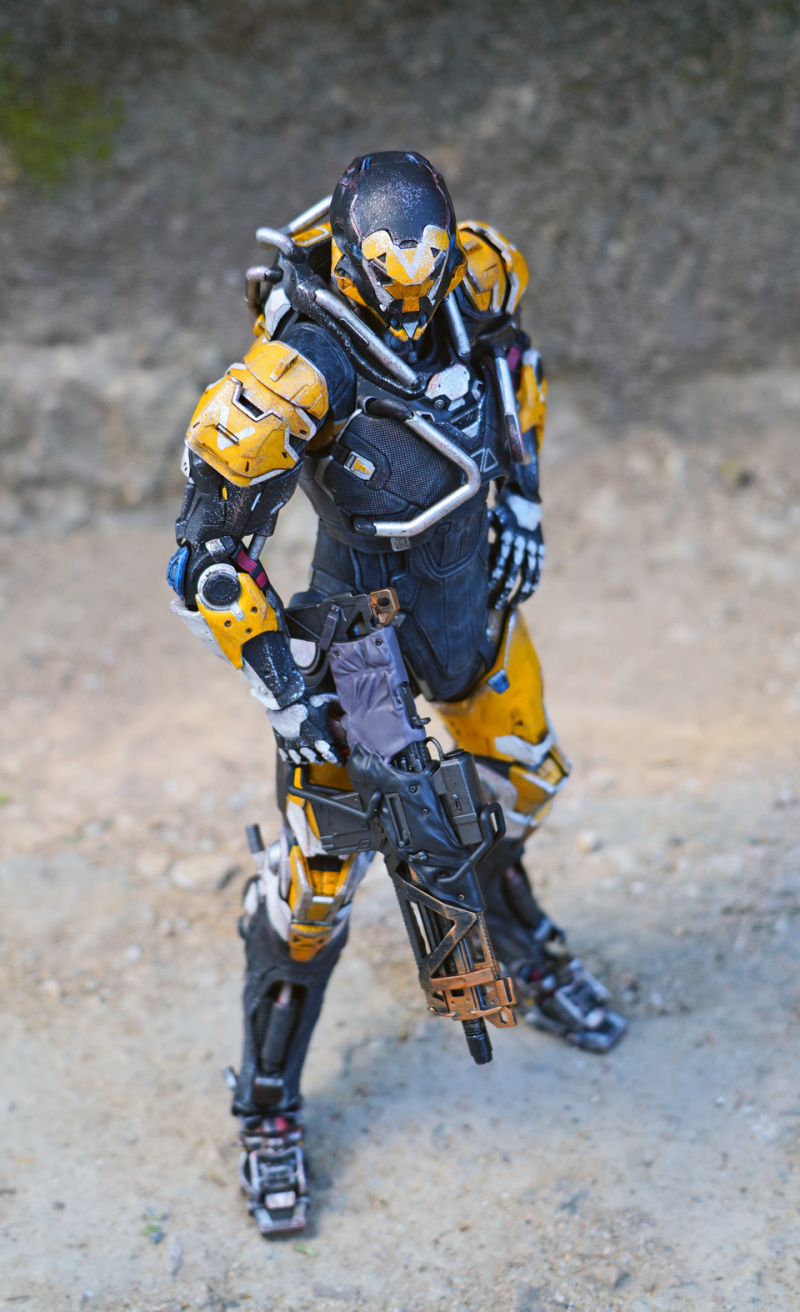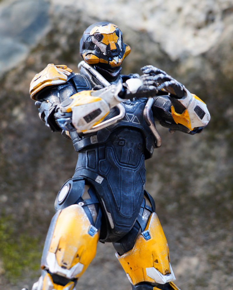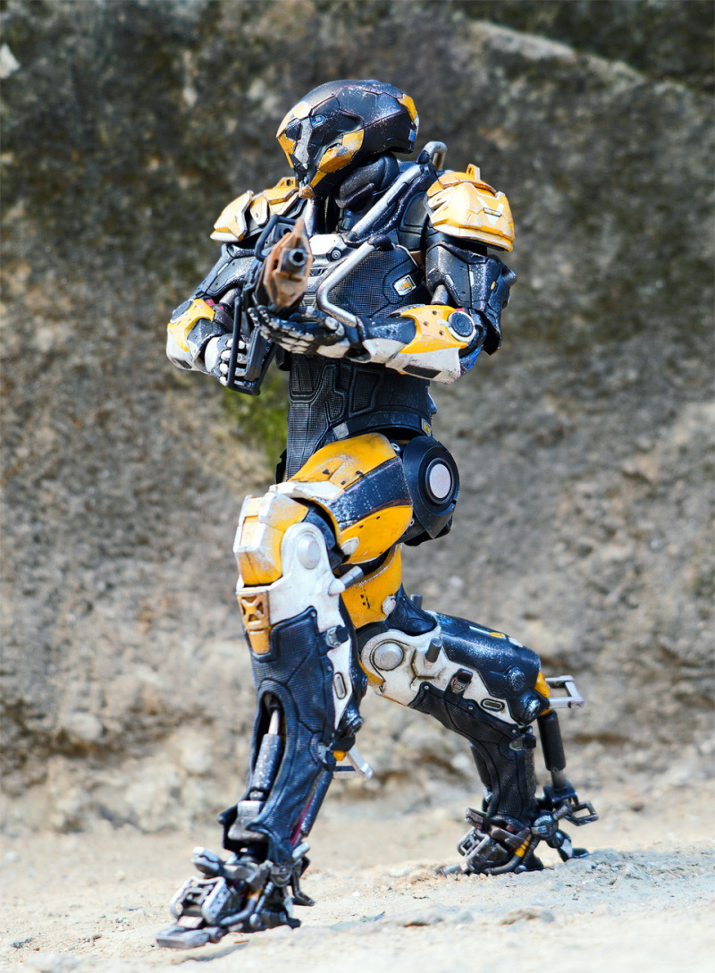 ”遊俠號” 全高約 36 cm,全身超過 27 個可動關節。配件包括六個可互換的造型手型及突擊步槍,並以大量複合材質及細緻刻畫其富機械結構的細節,以極致擬真的仿金屬質感塗裝及舊化效果,如實將遊戲中帥勁的科幻機甲由動畫中完美立體呈現。眼部及背部飛行背包更搭載 LED 發光功能,整體擬真質感更上一層樓。