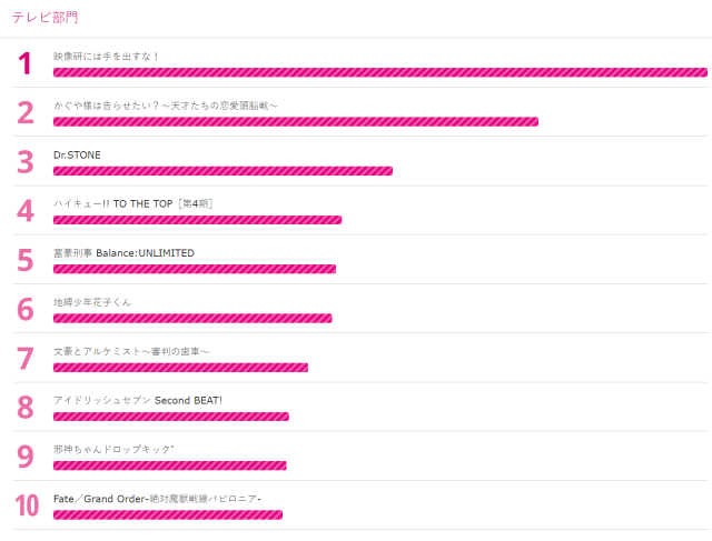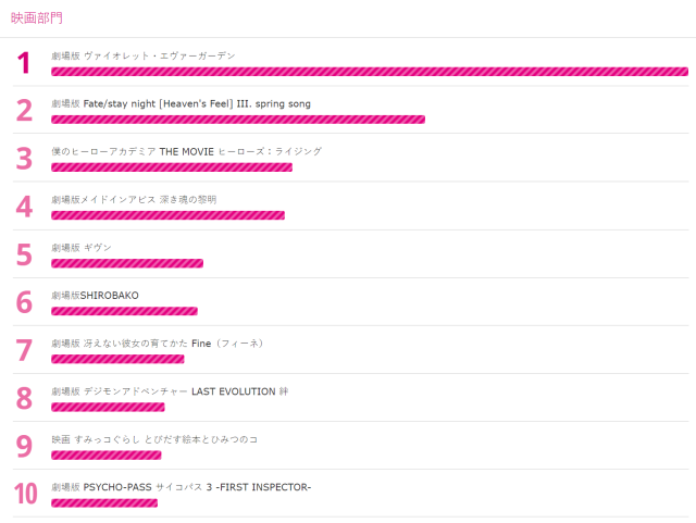 另外,也附上入圍的前 100 部作品,可以參照東京動畫獎的入選名單網頁,小編在此附圖僅上前 10 名。