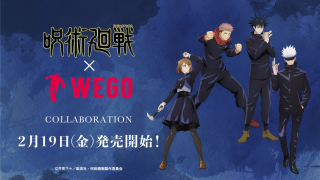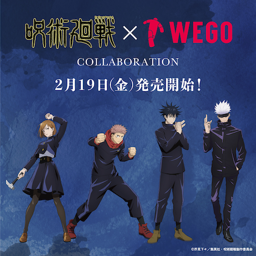 日本漫畫家芥見下下的漫畫作品《咒術迴戰》,為 2018 年開始在《週刊少年JUMP》連載,動畫第二季目前也播放中。近日宣布將與日本服飾品牌RAGEBLUE 展開合作外,將與日本連鎖服飾品牌 WEGO 也展開合作,推出一系列的聯名服飾,將於日本 2021 年 2 月 19 日正式發售。